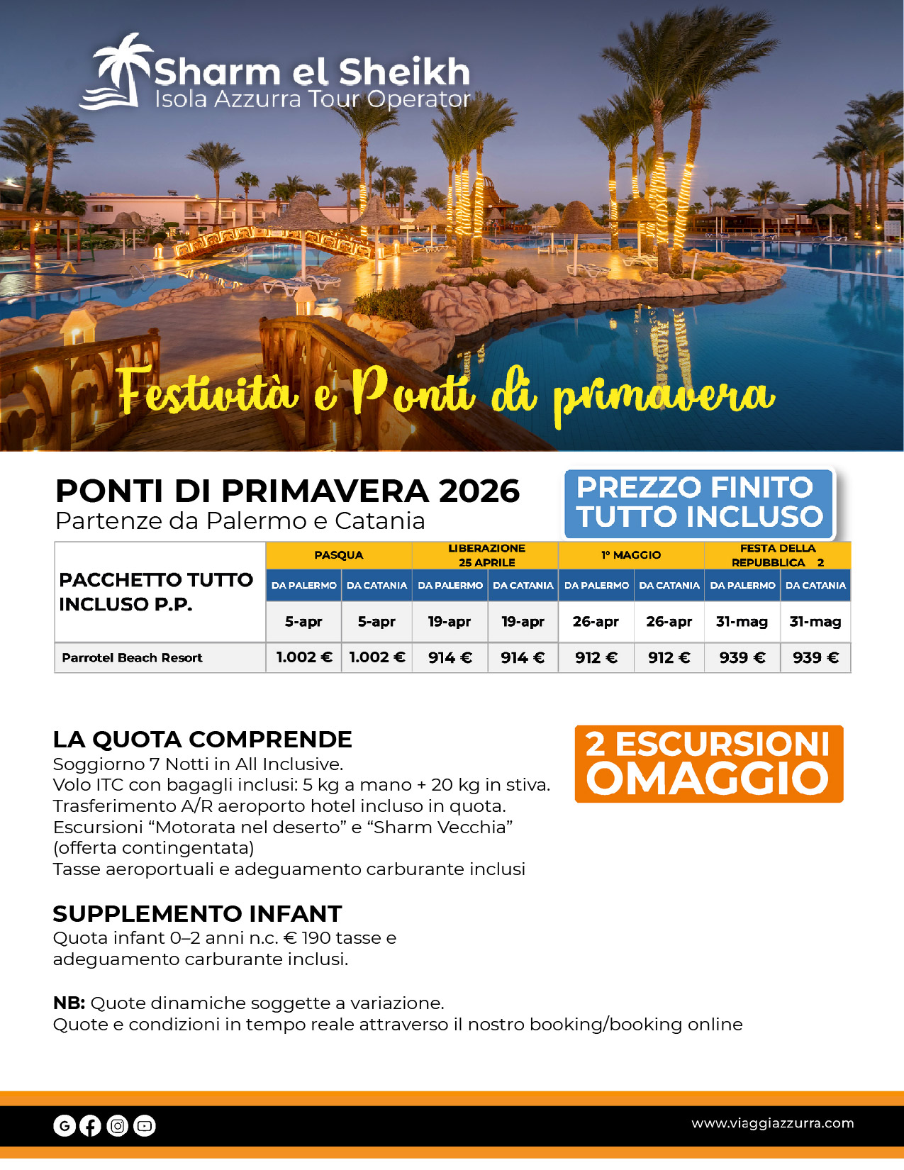 Festività e Ponti di Primavera 2026 - Parrotel Beach Resort