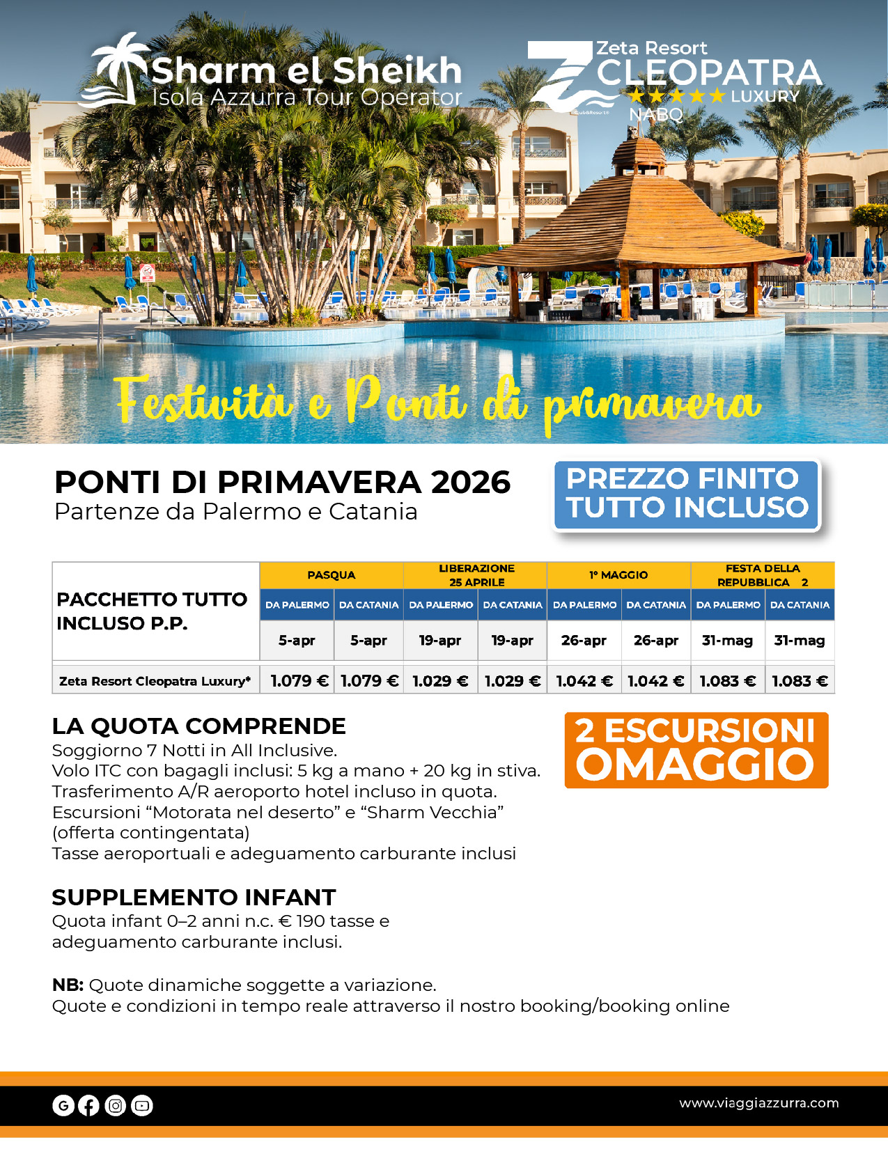 Festività e Ponti di Primavera 2026 - Zeta Resort Cleopatra Luxury