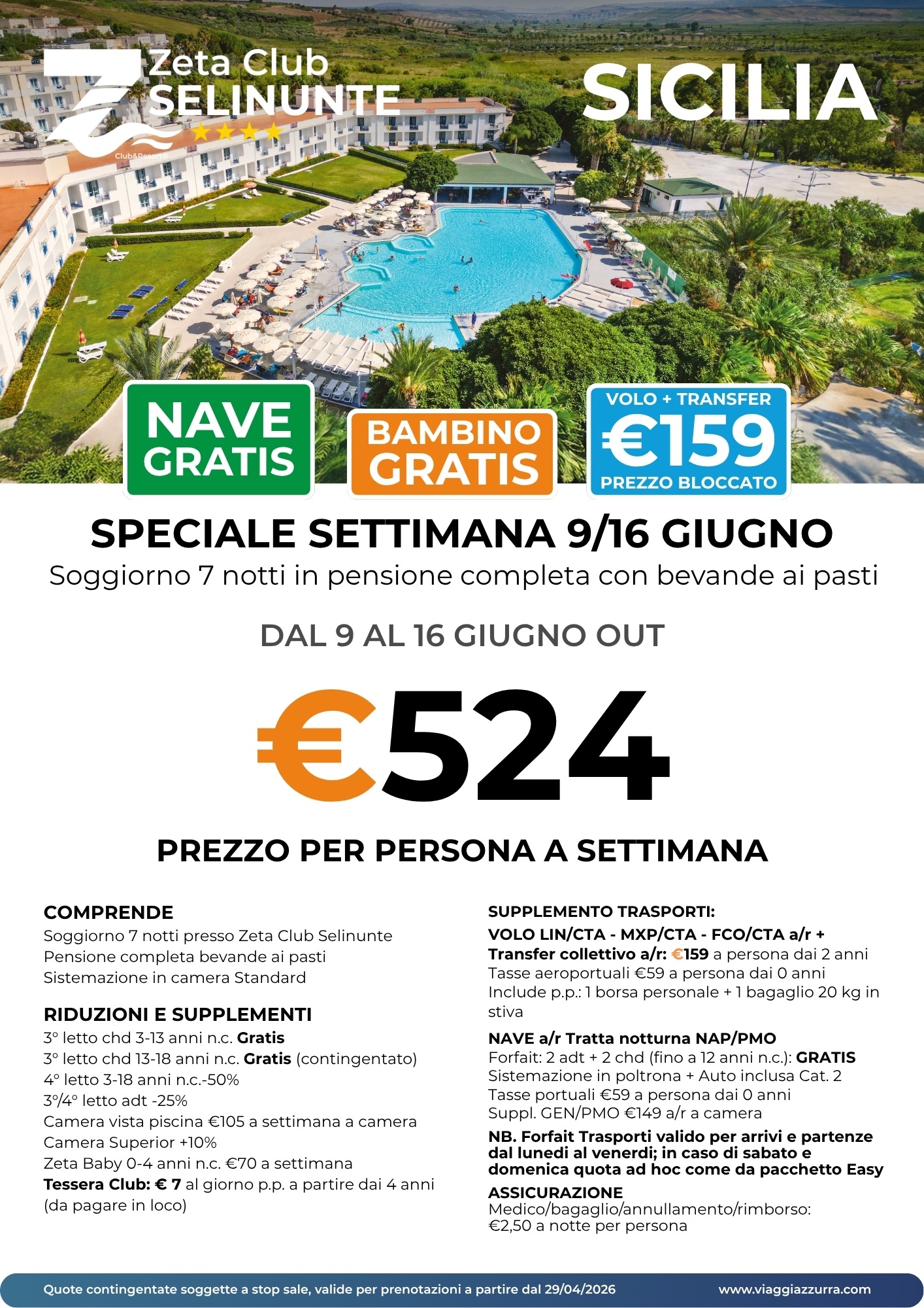 SPECIALE SETTIMANA 26 GIUGNO/3 LUGLIO - ZETA CLUB SIKANIA