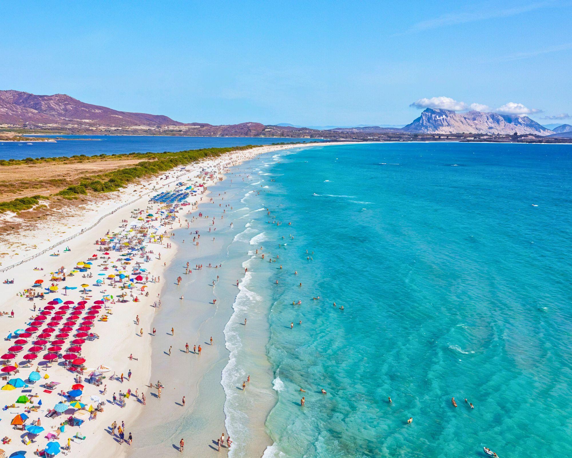 La spiaggia dista circa 1,5Km dall'hotel ed è raggiungibile con una comoda navetta attiva ad orari prestabiliti. All'interno della Cinta di San Teodoro, i clienti possono godere dell'incontaminata spiaggia di sabbia fine e bianca attrezzata di ombrelloni e lettini (1 ombrellone e 2 lettini a camera dalla 2° fila) fino ad esaurimento. Su richiesta, in loco e con supplemento è possibile prenotare la 1° fila.